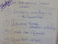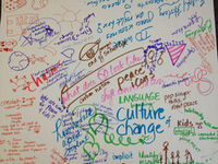 To gain momentum and to identify strategies to ensure a larger and successful Stakeholder Design Summit, to understand the vision of the National Peace Academy, and to draft action steps, we invited the greater community to a larger event held at the Portsmouth Public Library. Approximately 75 individuals from a wide range of peace education and peace action communities gathered in World Cafe style to dialogue about how we can grow a community of peacebuilders.